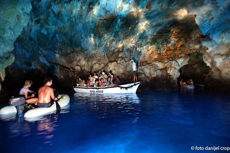 La visita alla Grotta Azzurra, sull'isola di Biševo, sicuramente vi lasciera senza fiato e rimarra a lungo nella memoria. Nel magnifico gioco di luce solare riflessa sul fondo bianco, c'è un affascinante tonalità di blu che illumina la grotta sopra e sotto la superficie del mare, e gli oggetti immersi nel mare assumono una patina d'argento. Anche l'isola di Biševo, con le sue spiaggie romantiche, vigneti e foreste di pini profumati, e' un vero paradiso per il rilassamento completo.