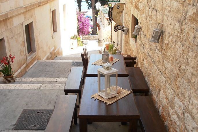 Konoba Gojava ( "Gojava" - name of the old Hvar district beneath the Napoleon fortress) is a nice little tavern  located on the first stairs west of the main square (Clock Tower). It's the perfect place for a quiet romantic candlelight dinner. If you are with friends and looking for a more crowded atmosphere there are tables located on the street. It is a great choice if you are looking for a good meal and a nice atmosphere, both for couples and company. As with many Hvar restaurants, it is family run, with nice traditional feel without all the rush from the main square. At Konoba Gojava you can enjoy your meals prepared on the 600 year old fireplace where food is still made with the same culinary passion. Don't forget to try some of the best wines produced on the Island of Hvar.