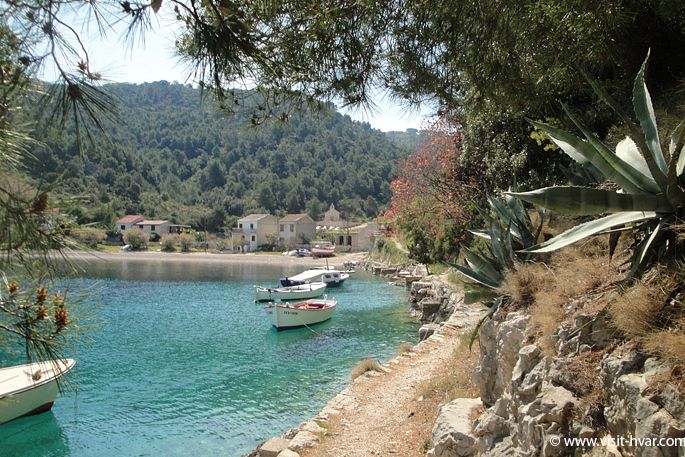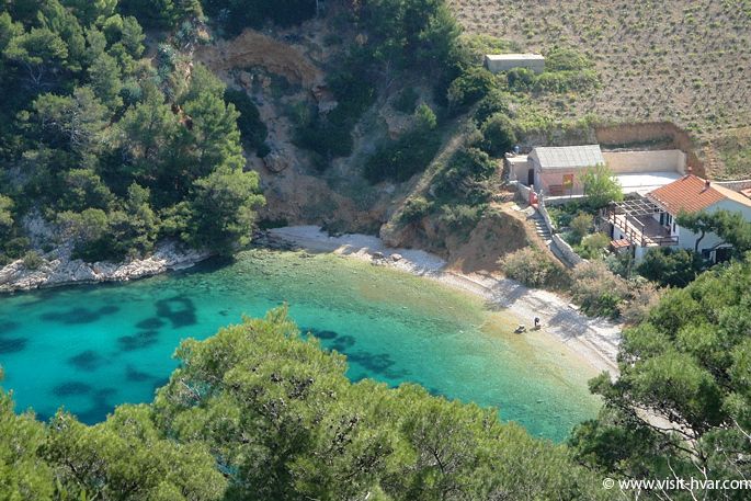 Le baie sono raggiungibili con l'auto da Hvar, prendendo la strada che conduce al paese di Brusje.